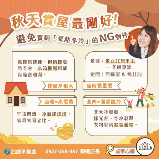 #秋天賞屋 #買房小知識 #居家挑選技巧 #樓層怎麼選 #房屋座向學 #避免夏熱冬冷 #賞屋季節正好 #房產新手必看 #房仲給你建議 #找對房子很重要