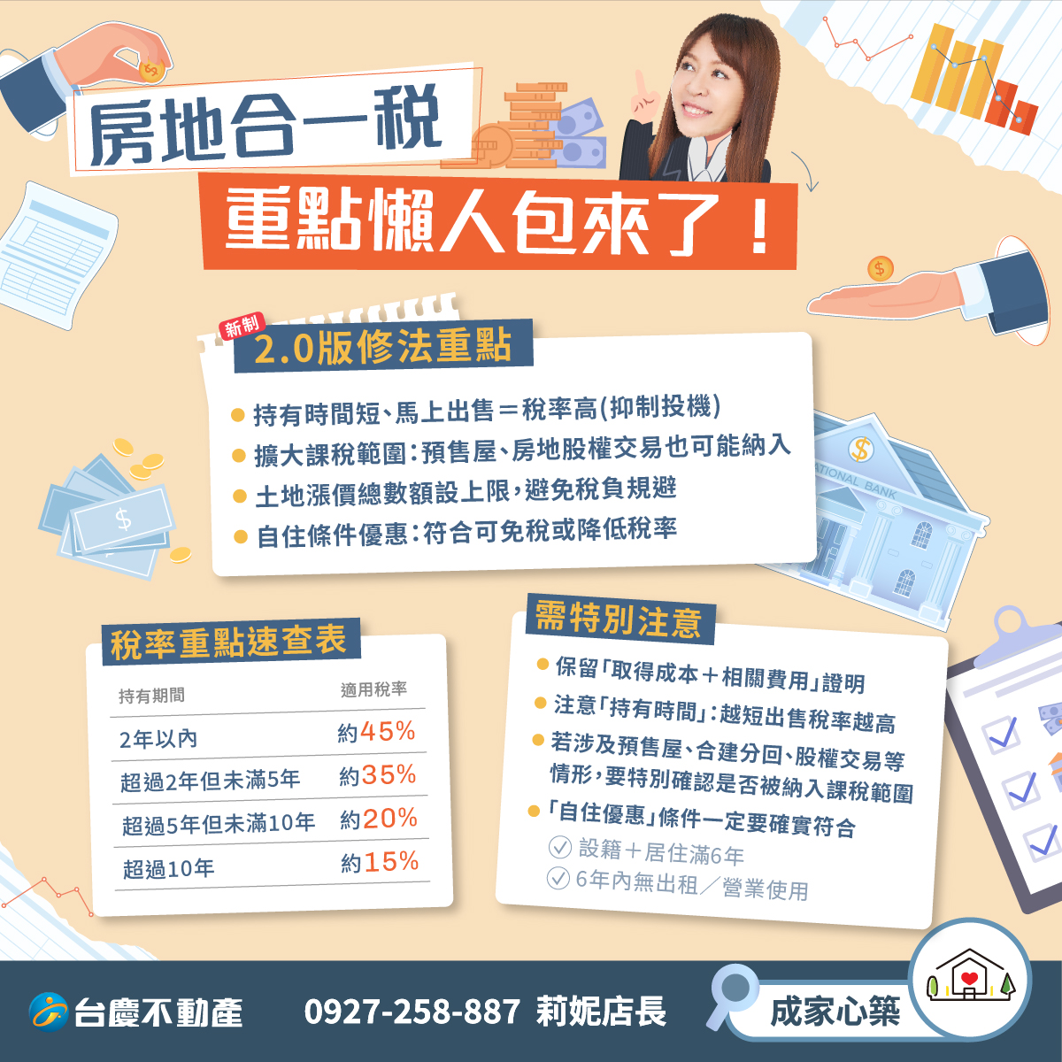 #房地合一稅 #房地合一稅2點0 #賣房稅務 #換屋須知 #自住房優惠 #不動產稅務 #房地產知識 #房產懶人包 #稅務重點 #莉妮店長 #莉妮諮詢 #成家心築 #新竹房仲 #買房賣屋 #房產知識分享